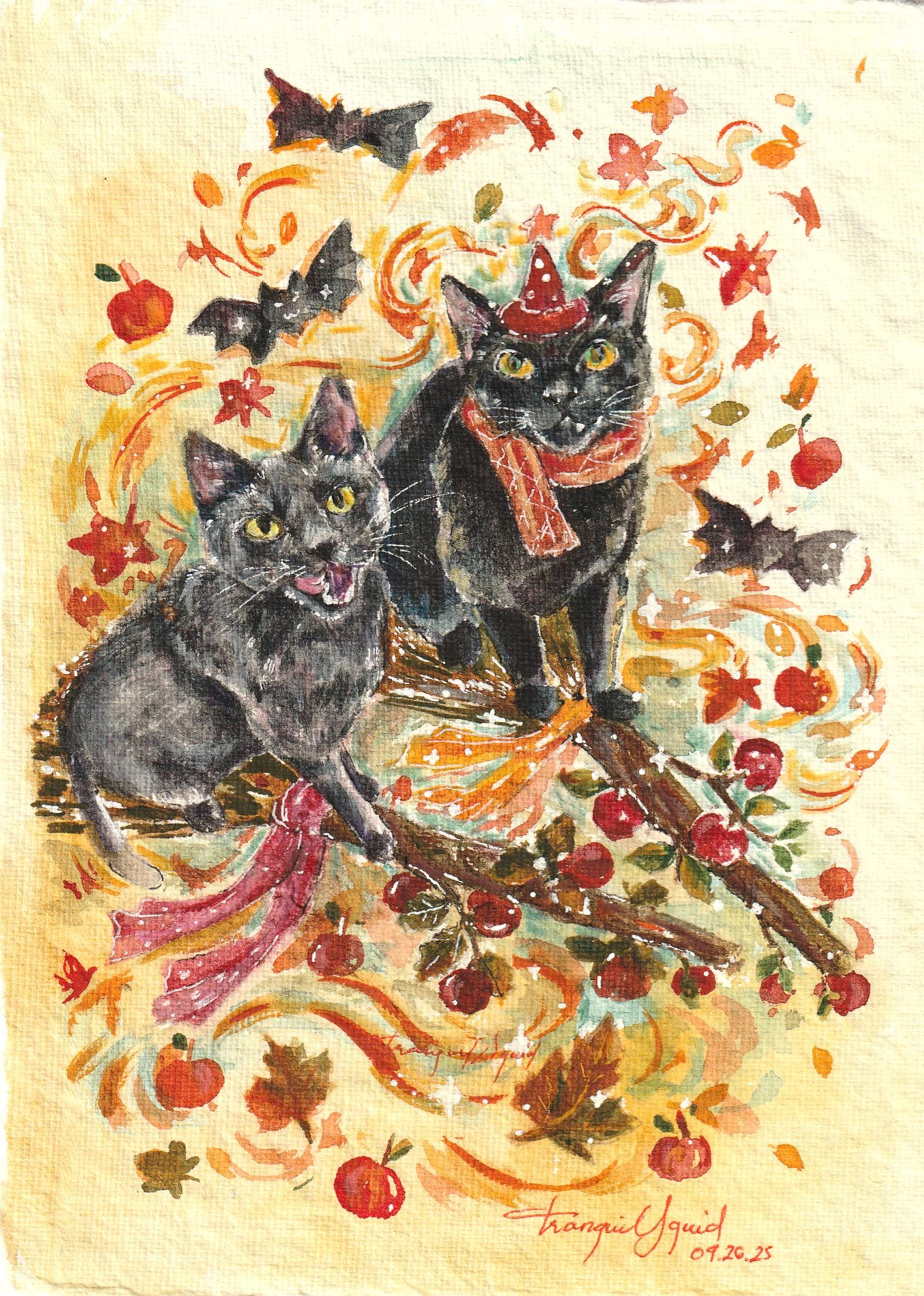 Autumn leaves and cats